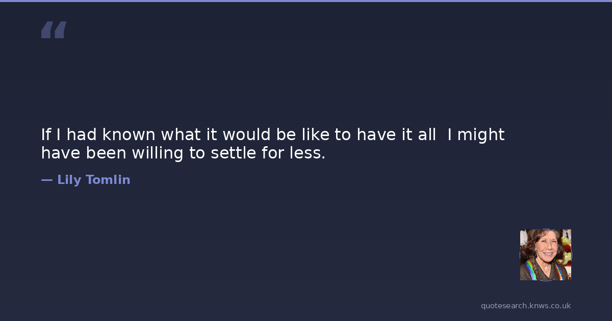If I had known what it would be like to have it all I might have been willing to settle for less.