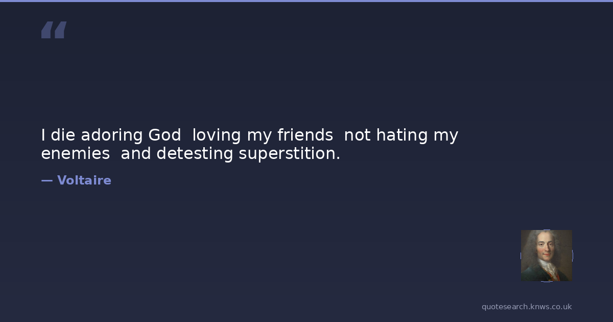 I die adoring God loving my friends not hating my enemies and detesting superstition.