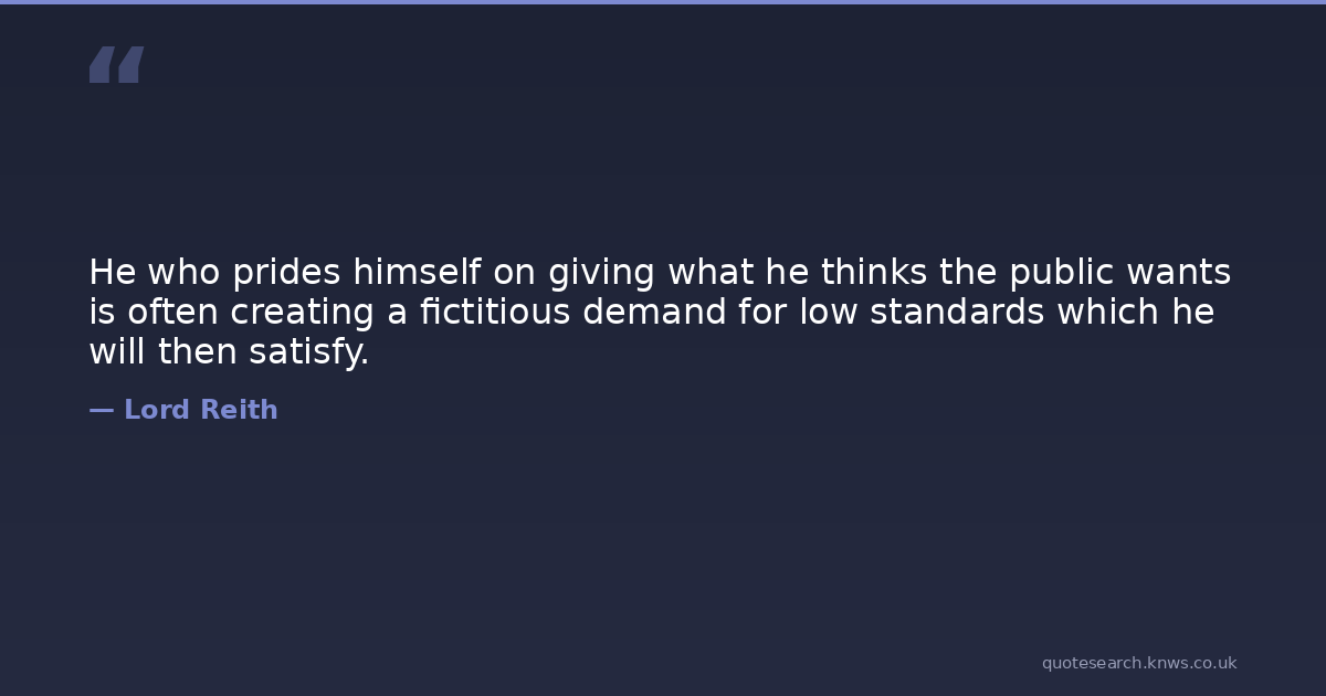 He who prides himself on giving what he thinks the public wants is often creating a fictitious demand for low standards which he will then satisfy.
