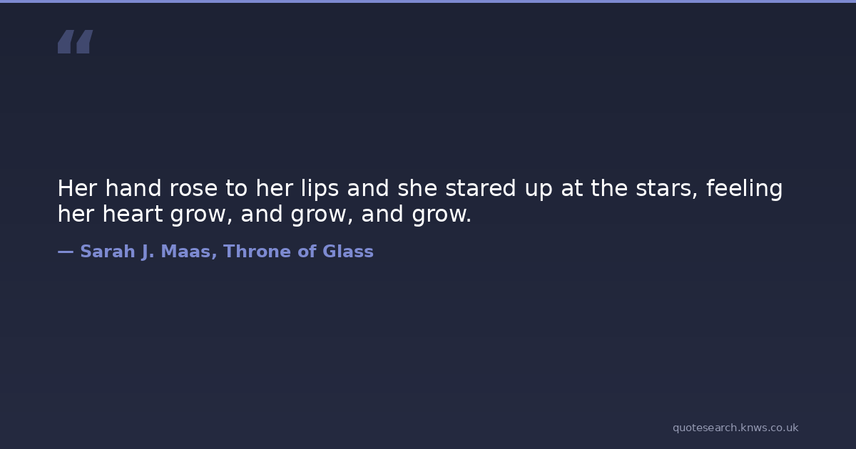 Her hand rose to her lips and she stared up at the stars, feeling her heart grow, and grow, and grow.