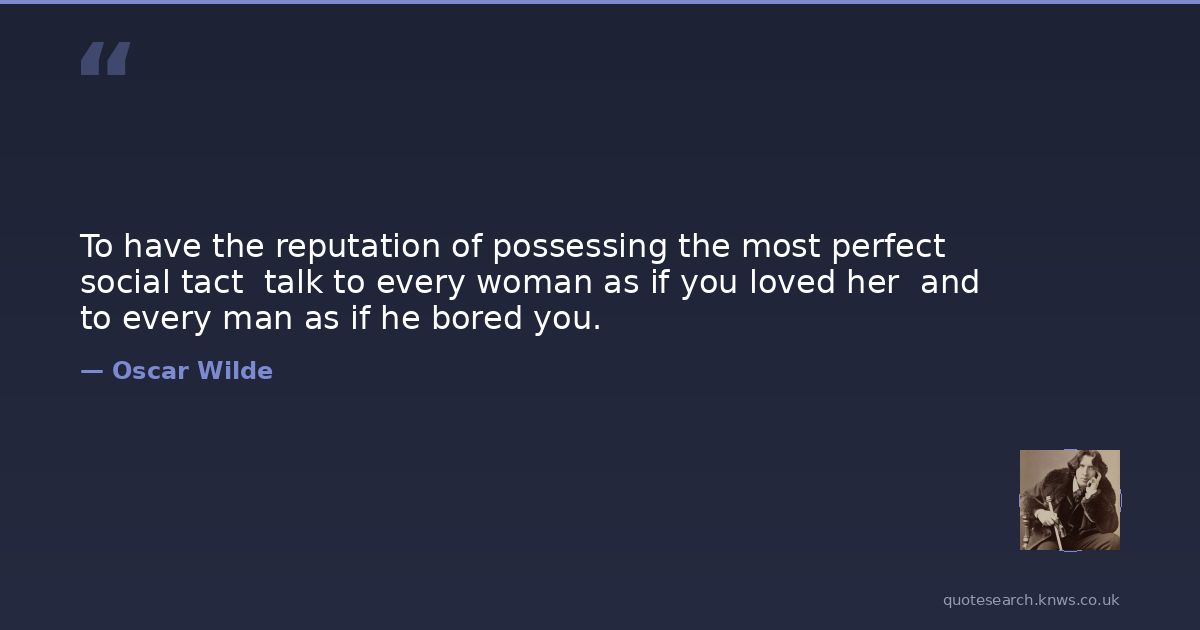 To have the reputation of possessing the most perfect social tact talk to every woman as if you loved her and to every man as if he bored you.