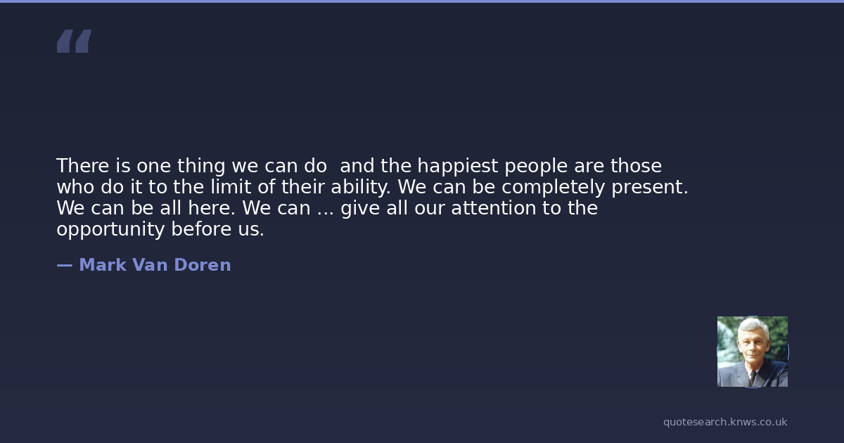 There is one thing we can do and the happiest people are those who do it to the limit of their ability. We can be completely present. We can be all here. We can ... give all our attention to the opportunity before us.