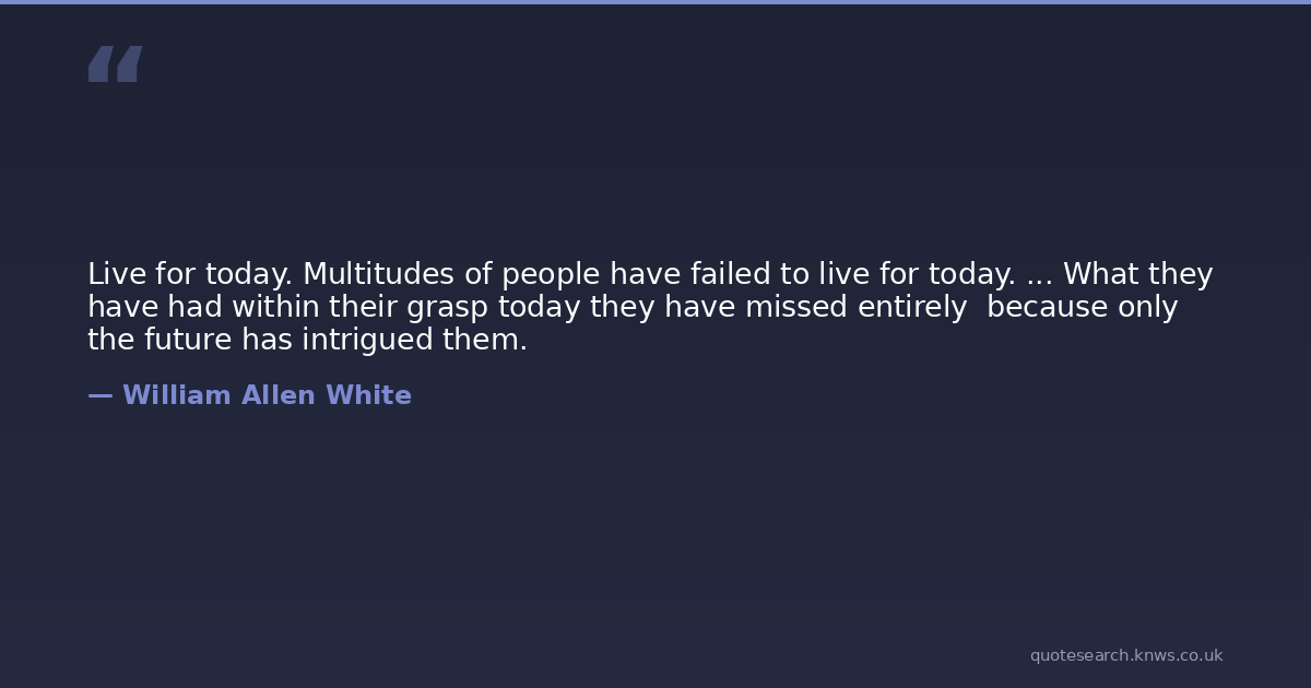 Live for today. Multitudes of people have failed to live for today. ... What they have had within their grasp today they have missed entirely because only the future has intrigued them.