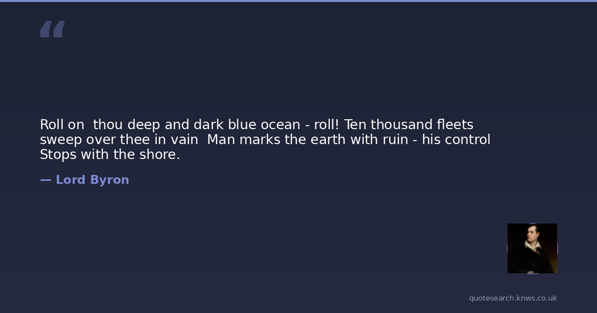 Roll on thou deep and dark blue ocean - roll! Ten thousand fleets sweep over thee in vain Man marks the earth with ruin - his control Stops with the shore.