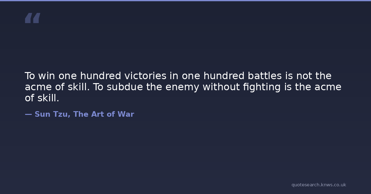 To win one hundred victories in one hundred battles is not the acme of skill. To subdue the enemy without fighting is the acme of skill.