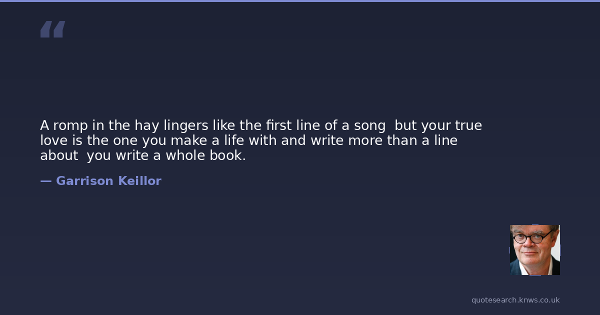 A romp in the hay lingers like the first line of a song but your true love is the one you make a life with and write more than a line about you write a whole book.
