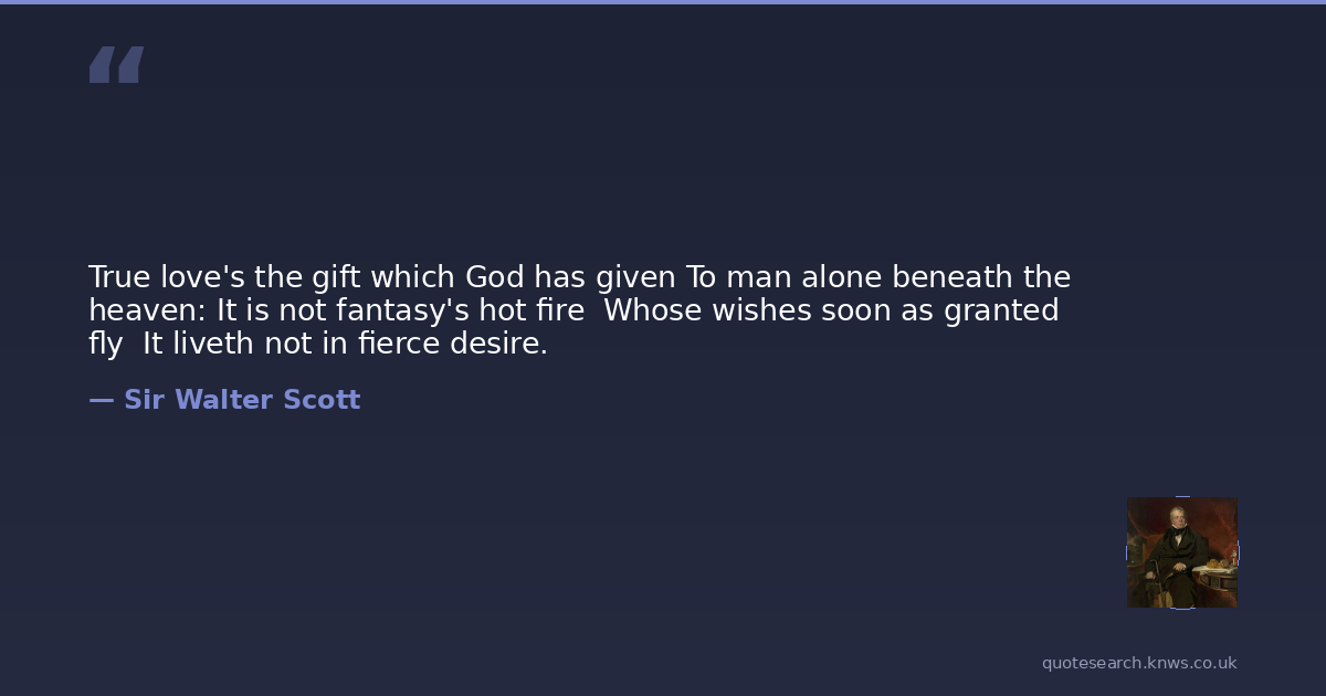 True love's the gift which God has given To man alone beneath the heaven: It is not fantasy's hot fire Whose wishes soon as granted fly It liveth not in fierce desire.