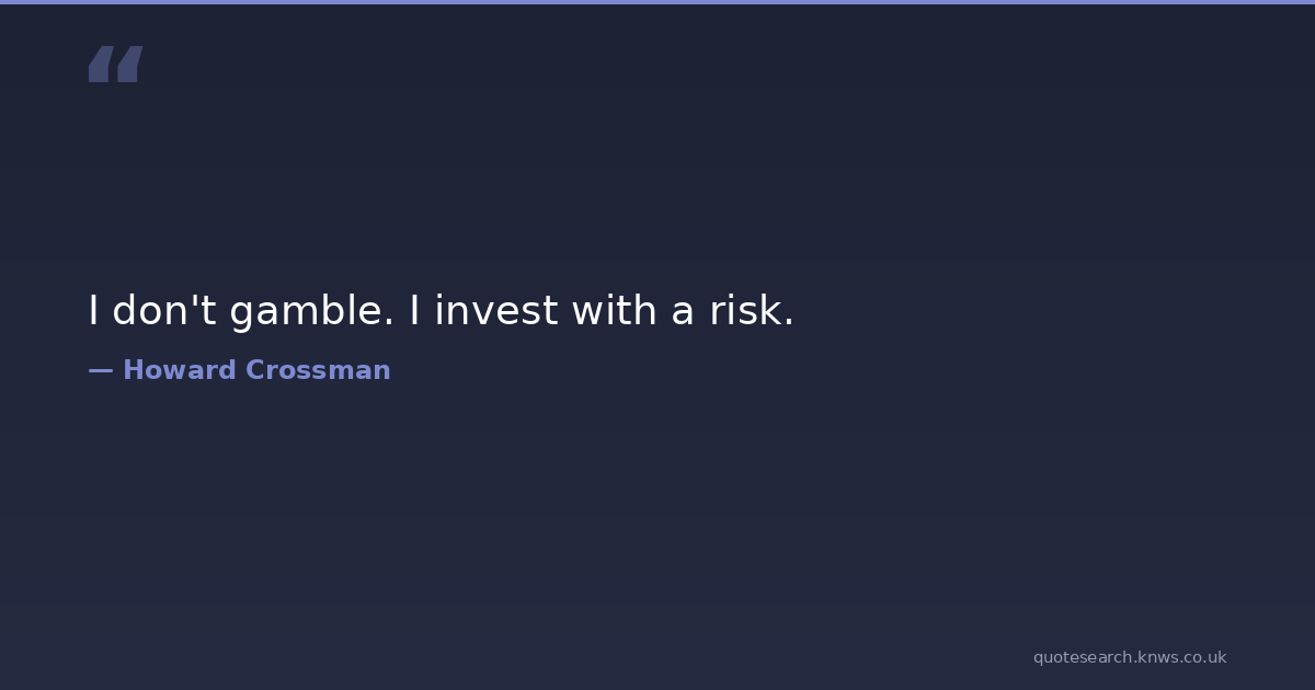 I don't gamble. I invest with a risk. vices foibles Download Image Share on X Share on Facebook Copy Link
