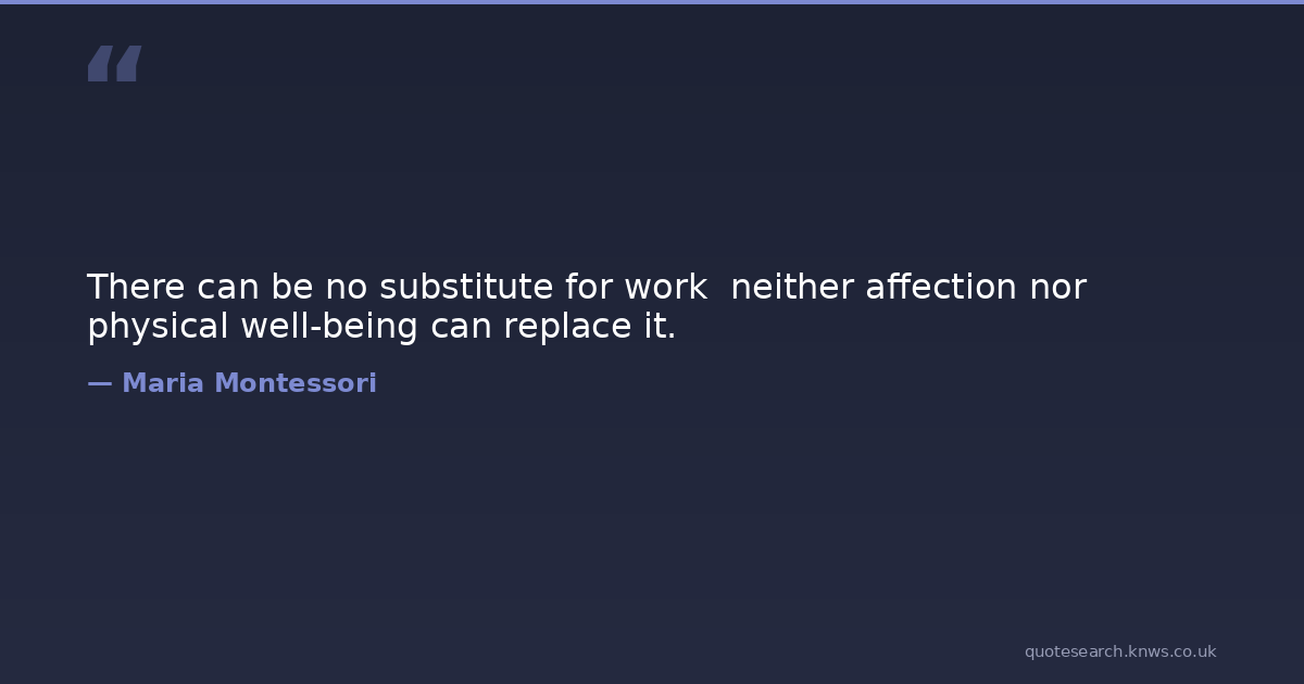 There can be no substitute for work neither affection nor physical well-being can replace it.