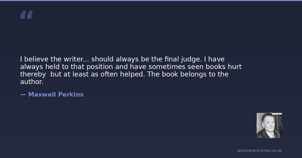 I believe the writer... should always be the final judge. I have always held to that position and have sometimes seen books hurt thereby but at least as often helped. The book belongs to the author.