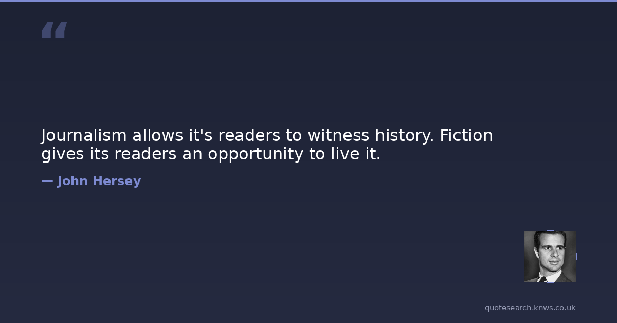 John Hersey was a 20th-century American journalist, novelist and academic. John Richard Hersey was an American writer and journalist. He is considered one of the earliest practitioners of the so-called New Journalism, in which storytelling techniques of fiction are adapted to non-fiction reportage. Read more on Wikipedia →