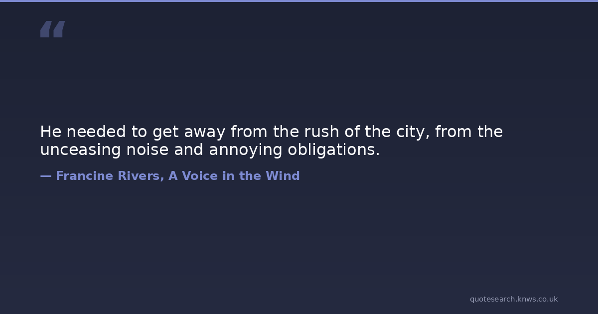 He needed to get away from the rush of the city, from the unceasing noise and annoying obligations.