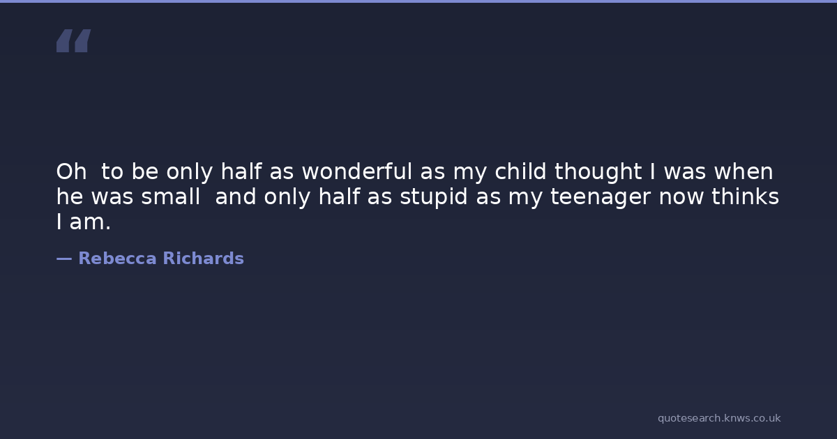 Oh to be only half as wonderful as my child thought I was when he was small and only half as stupid as my teenager now thinks I am.