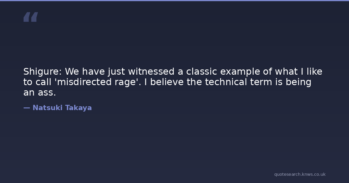 Shigure: We have just witnessed a classic example of what I like to call 'misdirected rage'. I believe the technical term is being an ass.