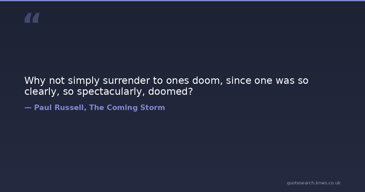Why not simply surrender to ones doom, since one was so clearly, so spectacularly, doomed?