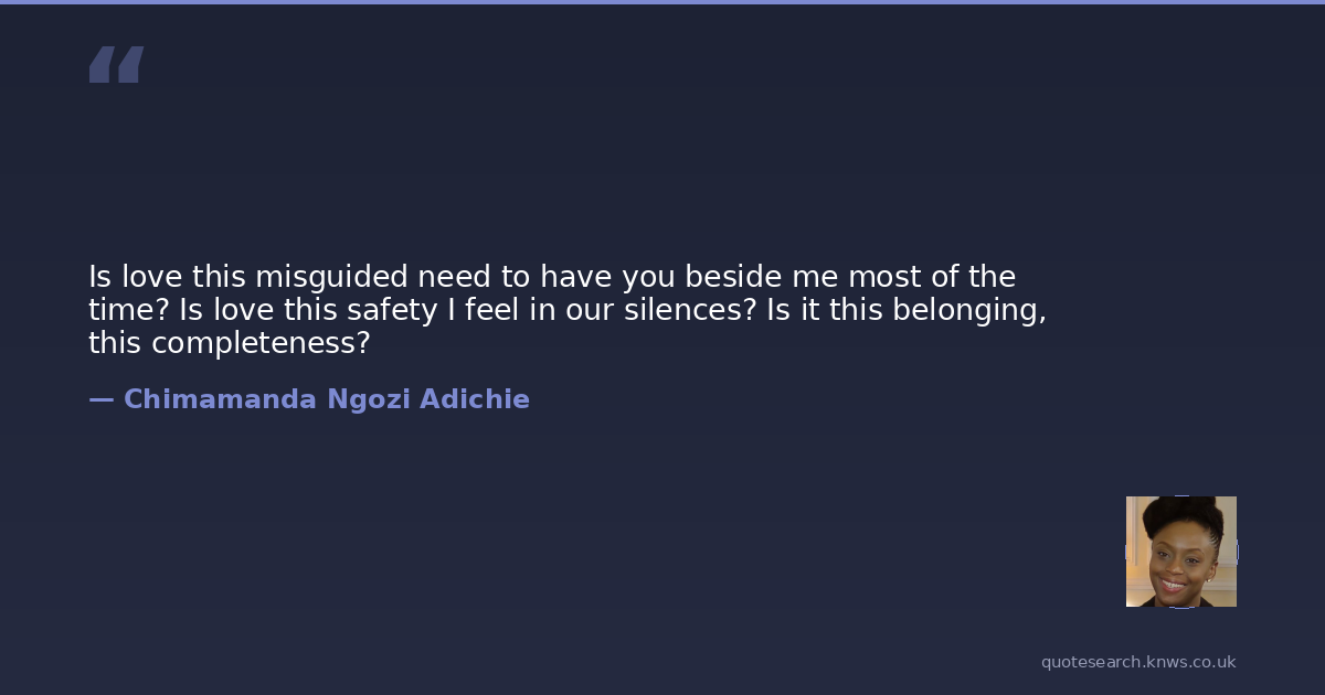Is love this misguided need to have you beside me most of the time? Is love this safety I feel in our silences? Is it this belonging, this completeness?