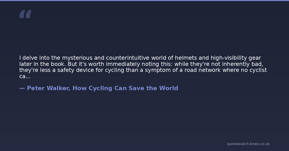I delve into the mysterious and counterintuitive world of helmets and high-visibility gear later in the book. But it's worth immediately noting this: while they're not inherently bad, they're less a safety device for cycling than a symptom of a road network where no cyclist can truly feel safe.