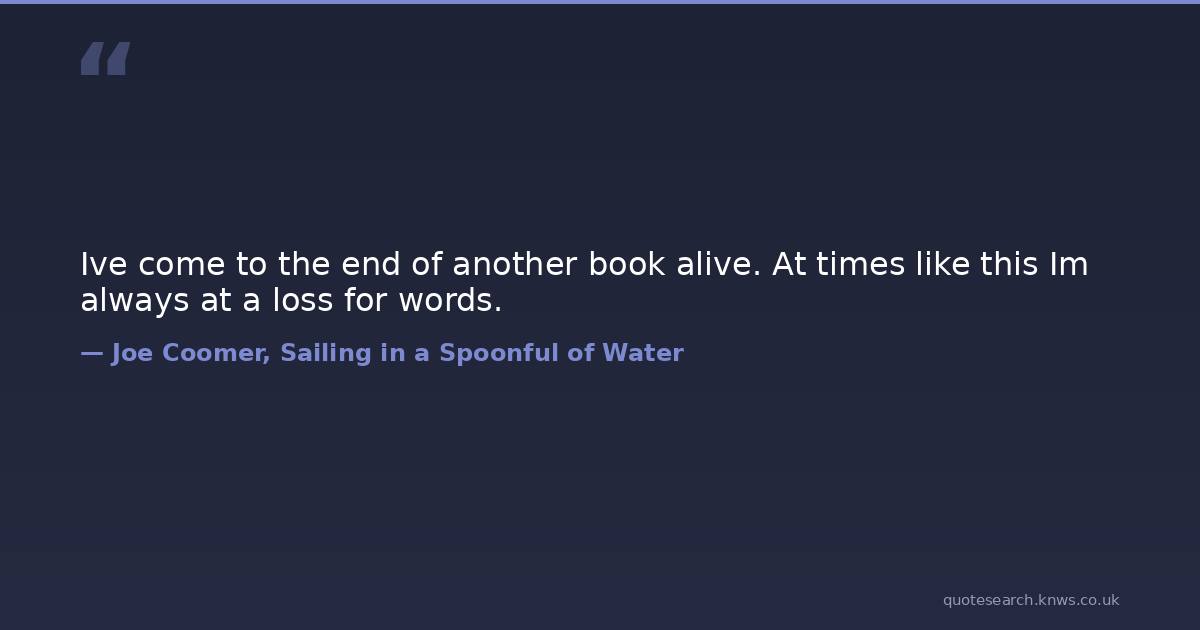 Ive come to the end of another book alive. At times like this Im always at a loss for words. writing-craft Download Image Share on X Share on Facebook Copy Link