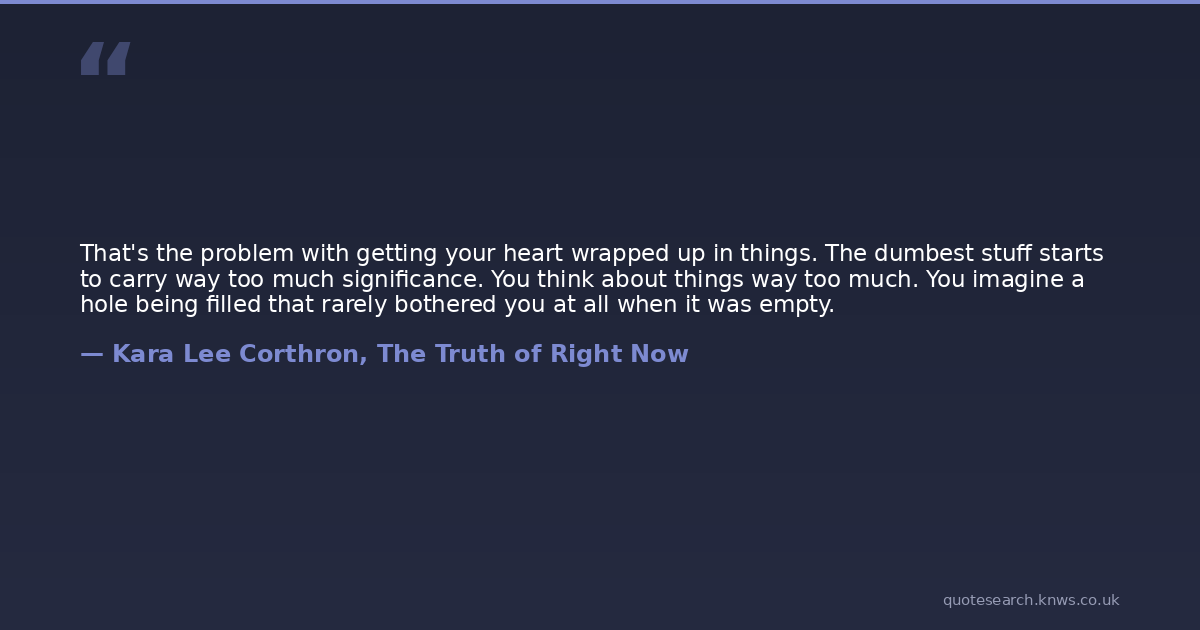 That's the problem with getting your heart wrapped up in things. The dumbest stuff starts to carry way too much significance. You think about things way too much. You imagine a hole being filled that rarely bothered you at all when it was empty.