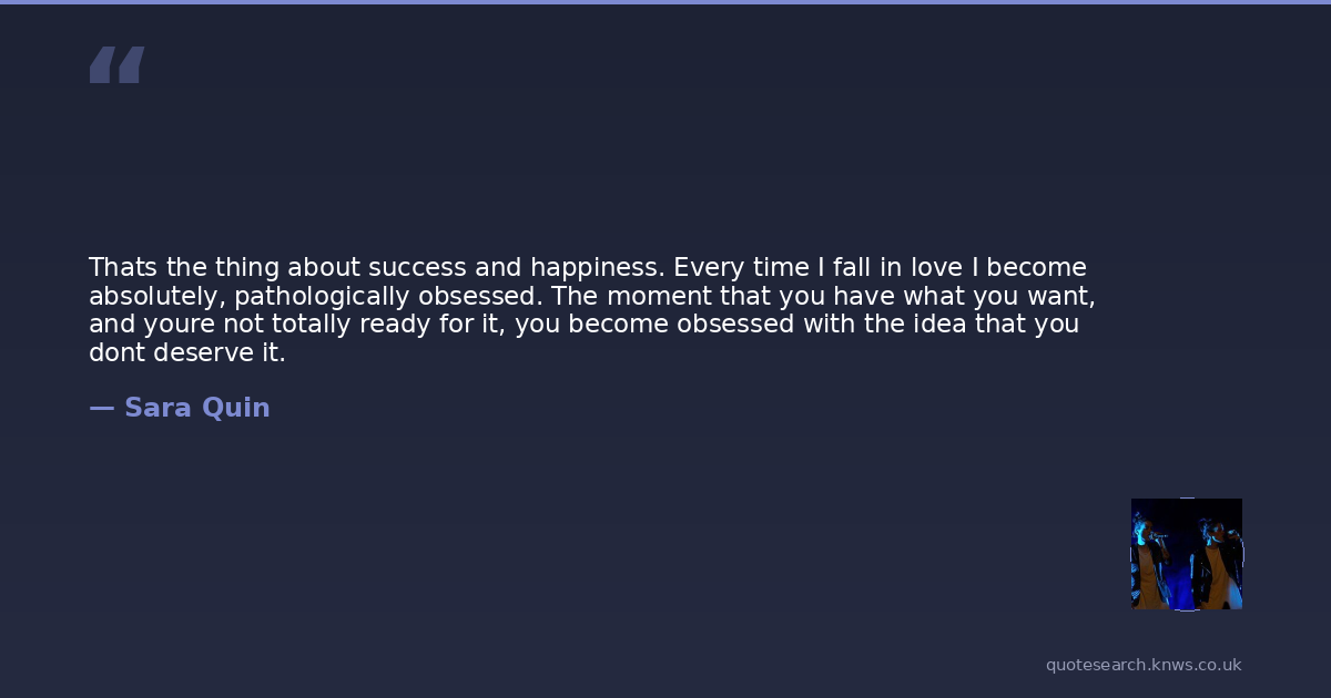 Thats the thing about success and happiness. Every time I fall in love I become absolutely, pathologically obsessed. The moment that you have what you want, and youre not totally ready for it, you become obsessed with the idea that you dont deserve it.