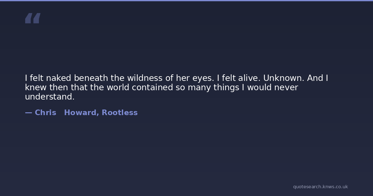 I felt naked beneath the wildness of her eyes. I felt alive. Unknown. And I knew then that the world contained so many things I would never understand.