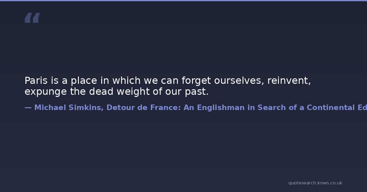 Paris is a place in which we can forget ourselves, reinvent, expunge the dead weight of our past. paris traveling Download Image Share on X Share on Facebook Copy Link