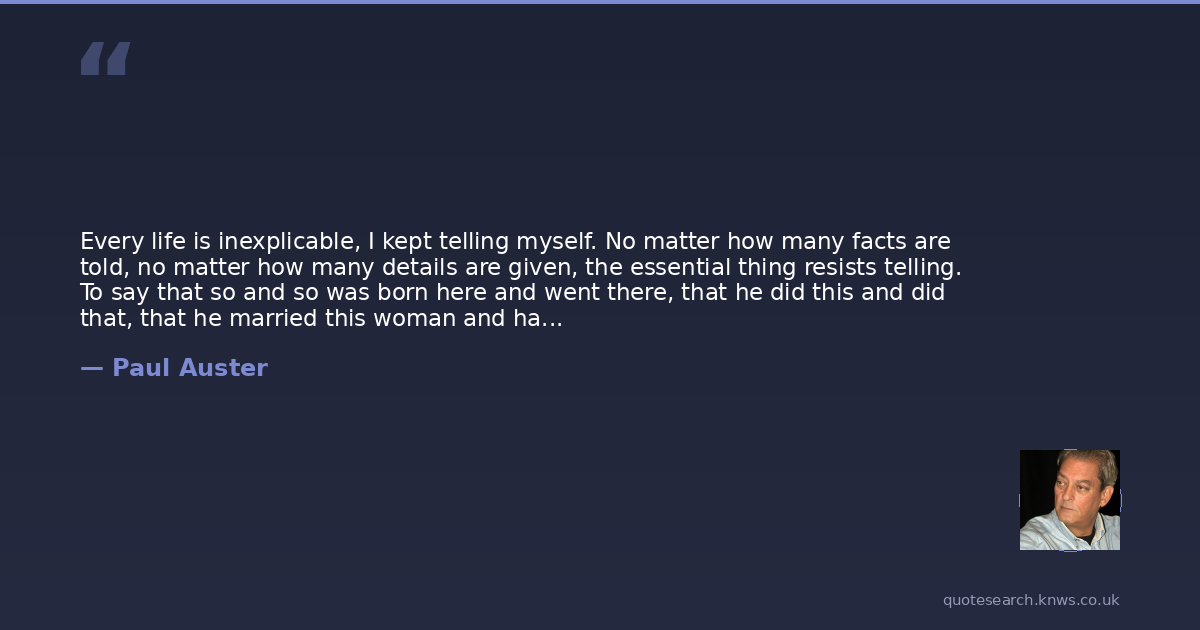 Every life is inexplicable, I kept telling myself. No matter how many facts are told, no matter how many details are given, the essential thing resists telling. To say that so and so was born here and went there, that he did this and did that, that he married this woman and had these children, that he lived, that he died, that he left behind these books or this battle or that bridge none of that tells us very much.
