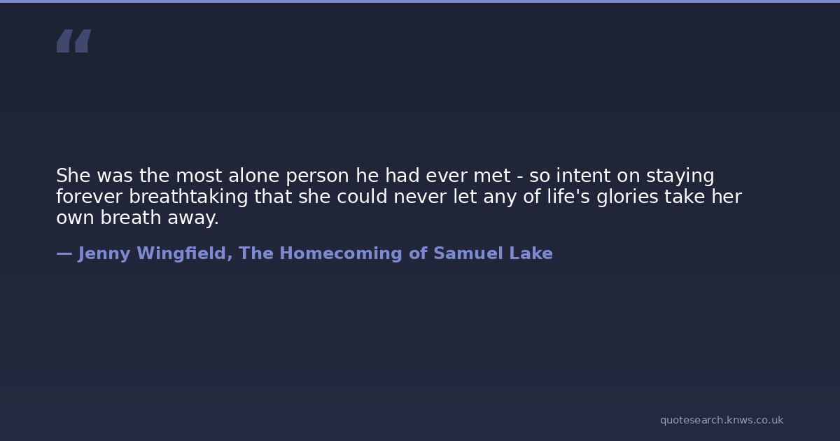 She was the most alone person he had ever met - so intent on staying forever breathtaking that she could never let any of life's glories take her own breath away.