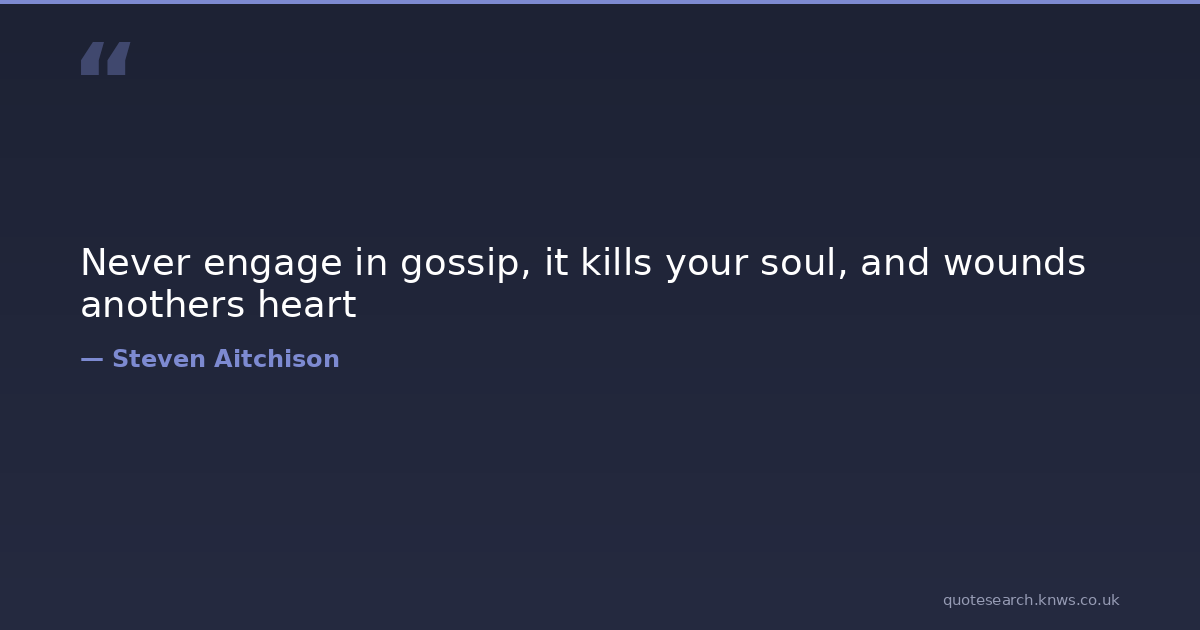Never engage in gossip, it kills your soul, and wounds anothers heart