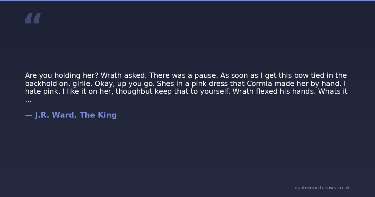 Are you holding her? Wrath asked. There was a pause. As soon as I get this bow tied in the backhold on, girlie. Okay, up you go. Shes in a pink dress that Cormia made her by hand. I hate pink. I like it on her, thoughbut keep that to yourself. Wrath flexed his hands. Whats it like? Not totally hating pink? Pretty fuckehrm, frickin emasculating. Yeah. Do not tell me Lassiters been metrosexualizing even you. I heard he talked Manello into going for a pedicure with himbut Im praying thats just gossip.-Wrath & Zsadist