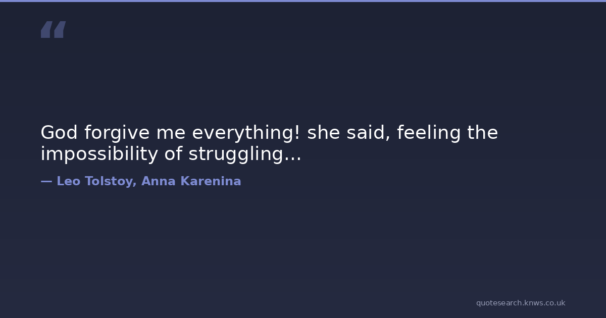 God forgive me everything! she said, feeling the impossibility of struggling...