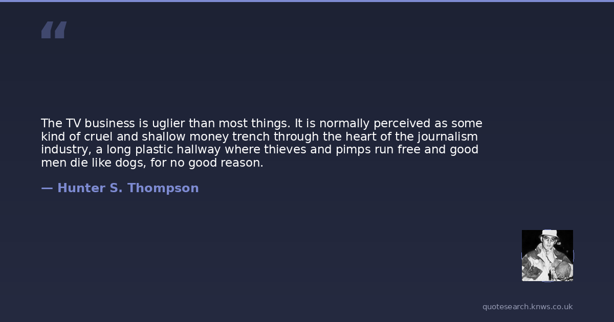 The TV business is uglier than most things. It is normally perceived as some kind of cruel and shallow money trench through the heart of the journalism industry, a long plastic hallway where thieves and pimps run free and good men die like dogs, for no good reason.