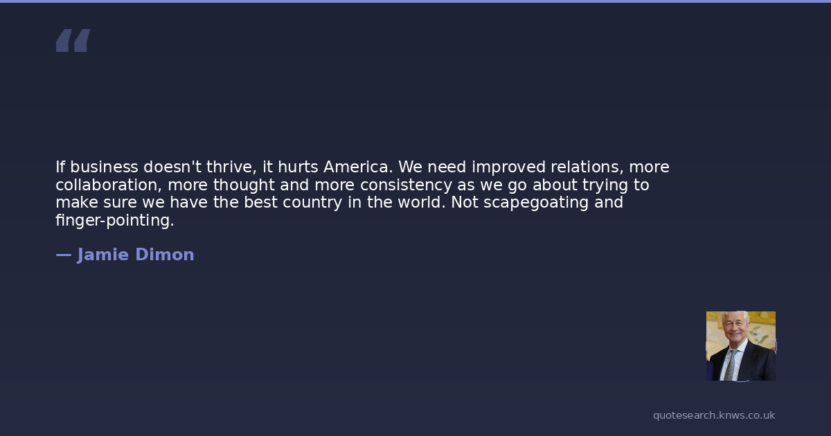 If business doesn't thrive, it hurts America. We need improved relations, more collaboration, more thought and more consistency as we go about trying to make sure we have the best country in the world. Not scapegoating and finger-pointing.