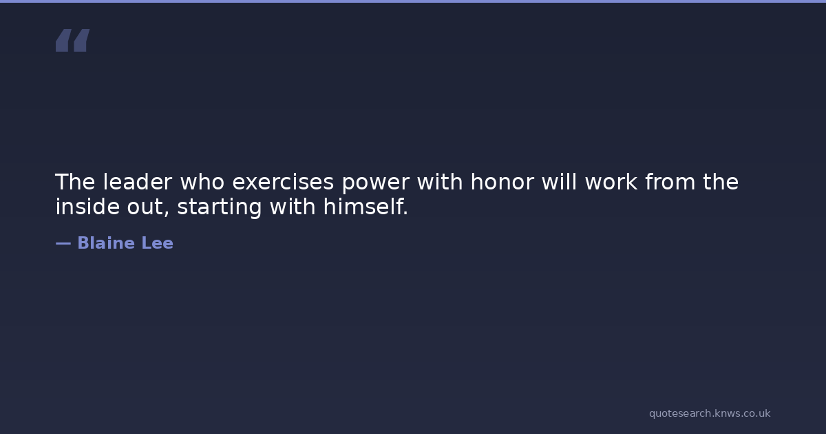 The leader who exercises power with honor will work from the inside out, starting with himself. Work Leader Power Download Image Share on X Share on Facebook Copy Link
