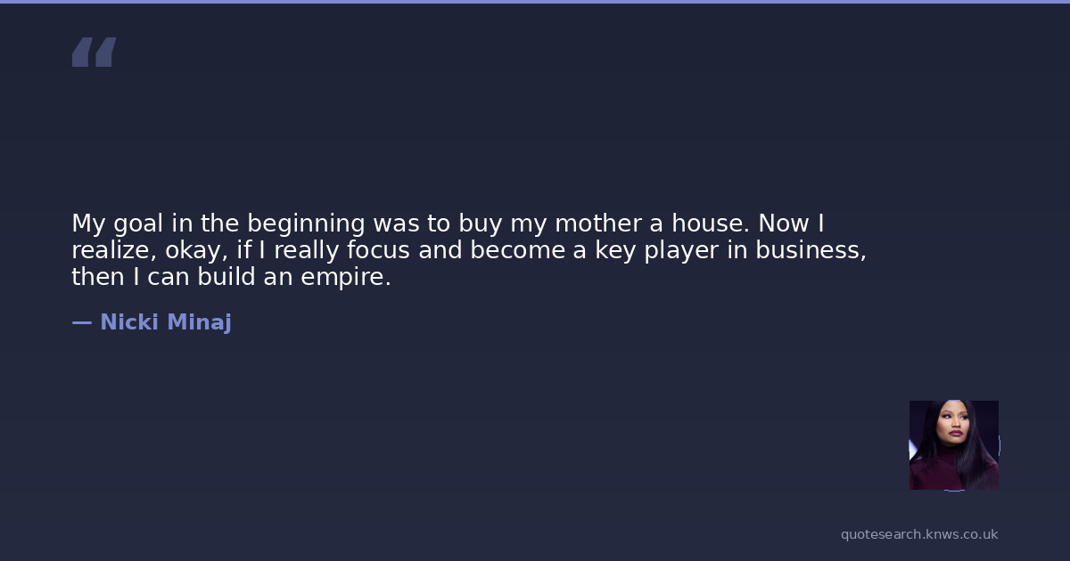 My goal in the beginning was to buy my mother a house. Now I realize, okay, if I really focus and become a key player in business, then I can build an empire.