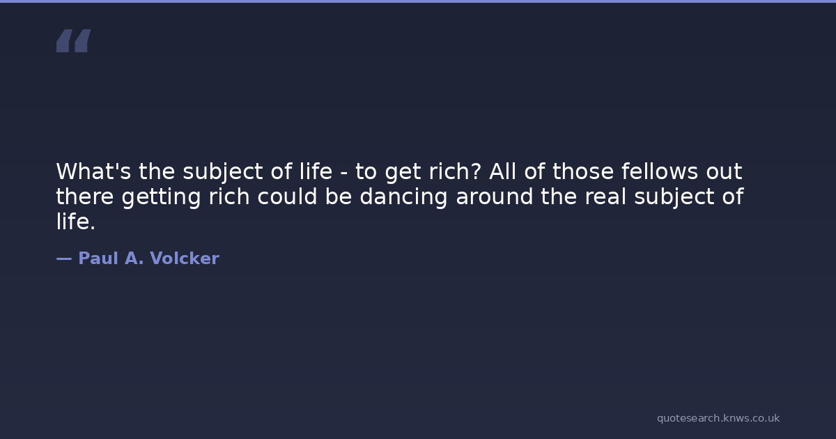 What's the subject of life - to get rich? All of those fellows out there getting rich could be dancing around the real subject of life.