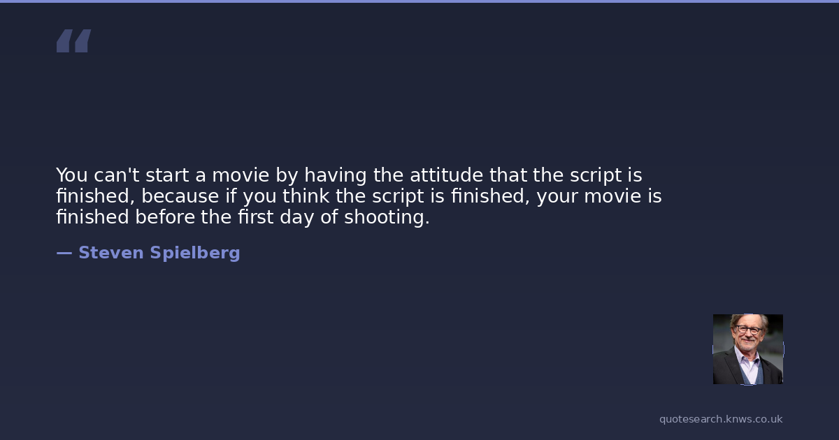 You can't start a movie by having the attitude that the script is finished, because if you think the script is finished, your movie is finished before the first day of shooting.