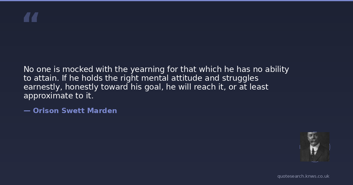 No one is mocked with the yearning for that which he has no ability to attain. If he holds the right mental attitude and struggles earnestly, honestly toward his goal, he will reach it, or at least approximate to it.