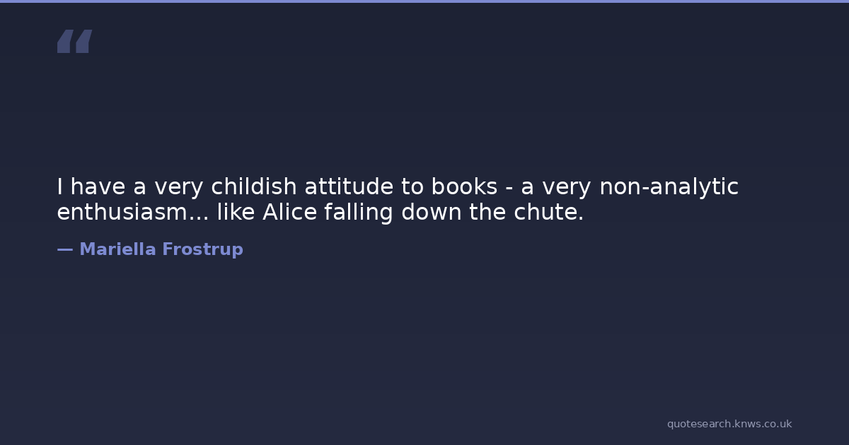 I have a very childish attitude to books - a very non-analytic enthusiasm... like Alice falling down the chute.