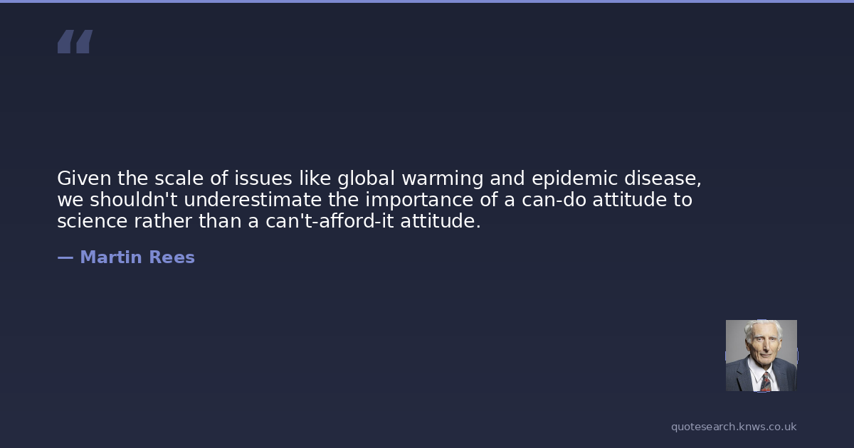Given the scale of issues like global warming and epidemic disease, we shouldn't underestimate the importance of a can-do attitude to science rather than a can't-afford-it attitude.