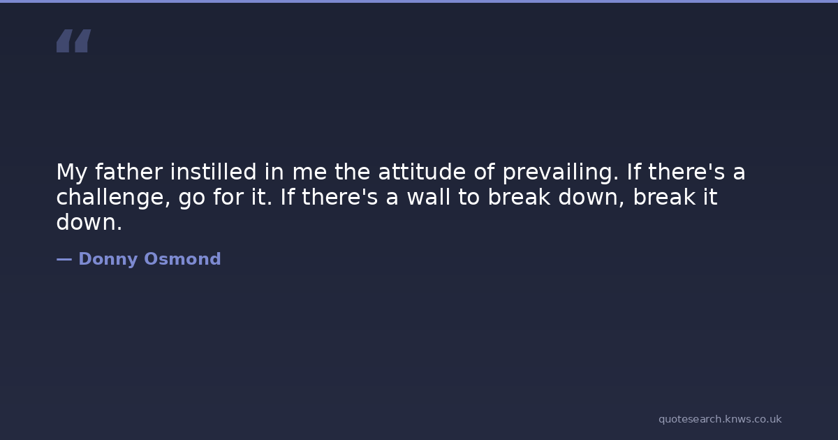 My father instilled in me the attitude of prevailing. If there's a challenge, go for it. If there's a wall to break down, break it down.