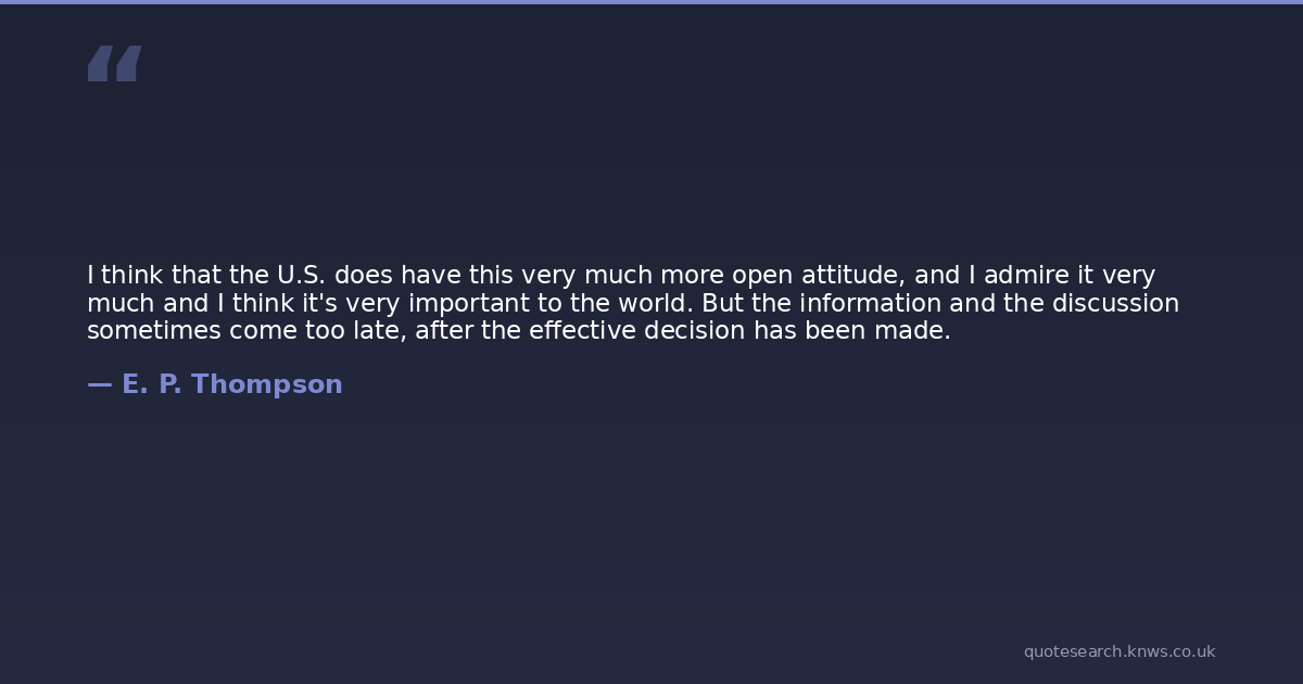 I think that the U.S. does have this very much more open attitude, and I admire it very much and I think it's very important to the world. But the information and the discussion sometimes come too late, after the effective decision has been made.