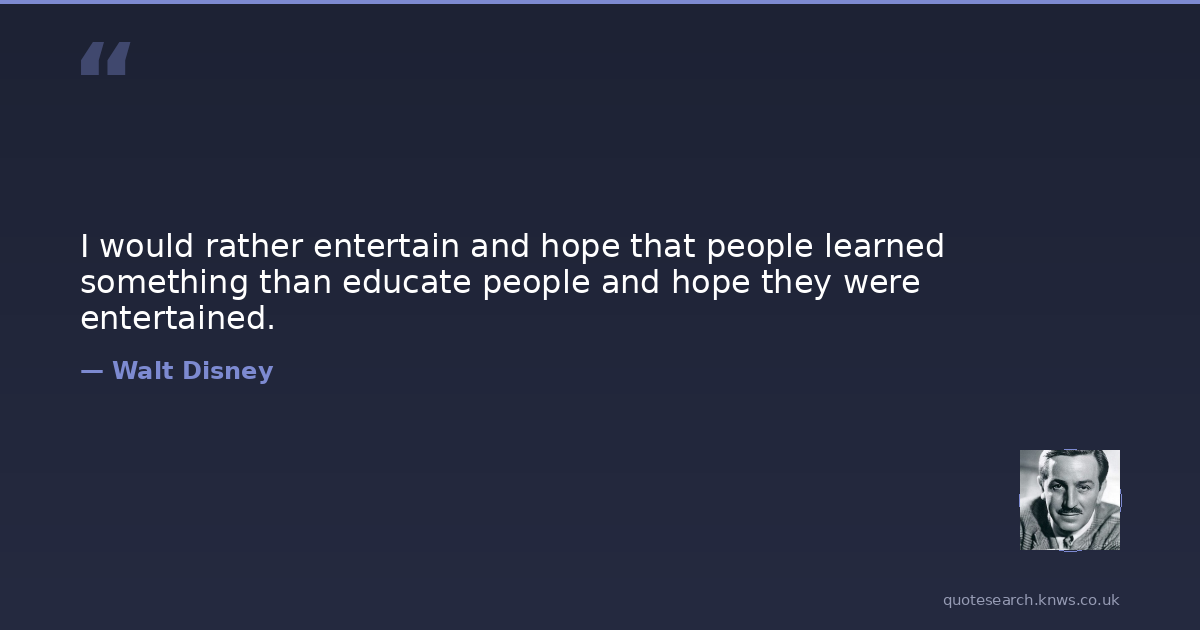 I would rather entertain and hope that people learned something than educate people and hope they were entertained.