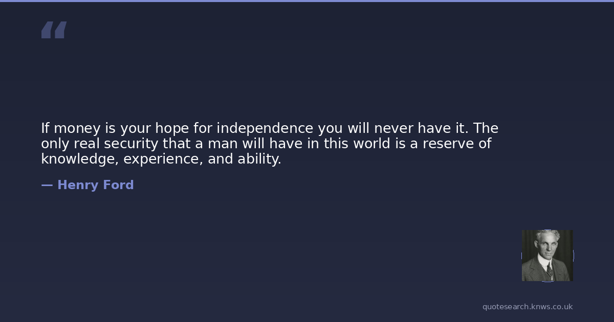 If money is your hope for independence you will never have it. The only real security that a man will have in this world is a reserve of knowledge, experience, and ability.