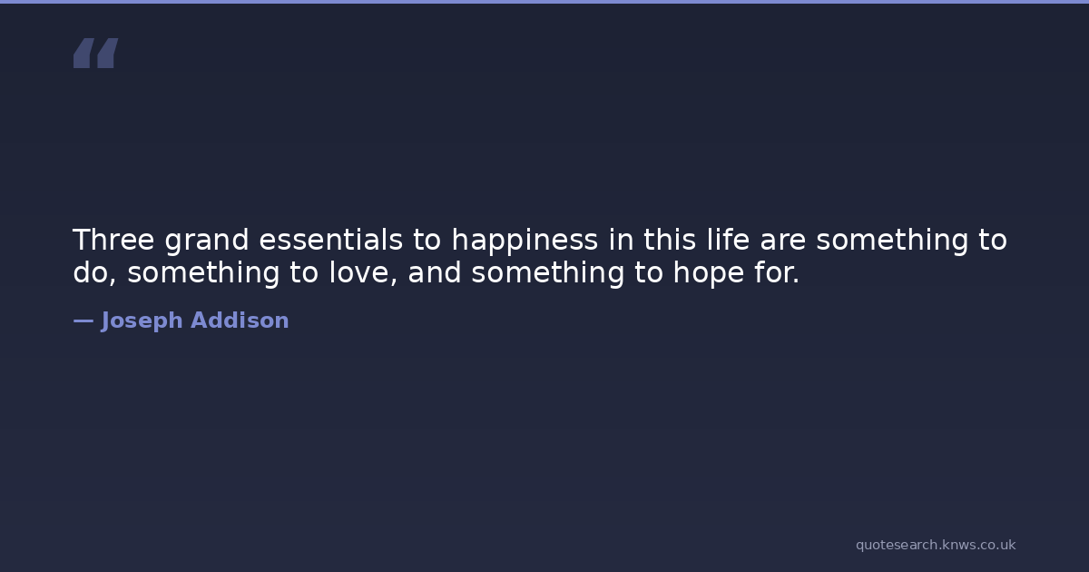 Three grand essentials to happiness in this life are something to do, something to love, and something to hope for.