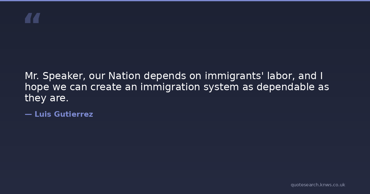 Mr. Speaker, our Nation depends on immigrants' labor, and I hope we can create an immigration system as dependable as they are.