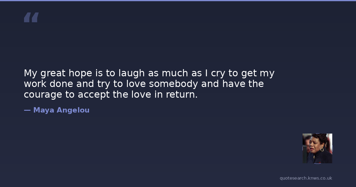 My great hope is to laugh as much as I cry to get my work done and try to love somebody and have the courage to accept the love in return.