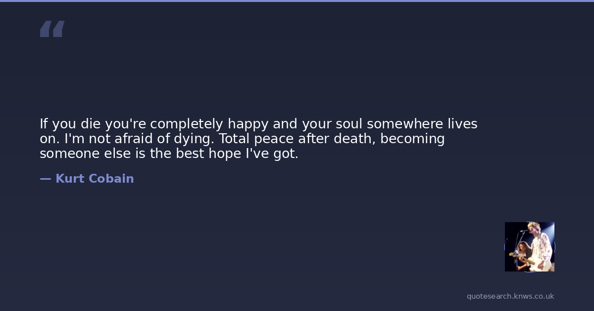 If you die you're completely happy and your soul somewhere lives on. I'm not afraid of dying. Total peace after death, becoming someone else is the best hope I've got.