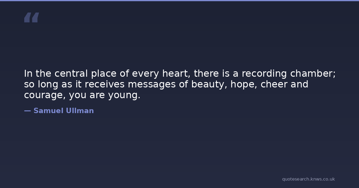 In the central place of every heart, there is a recording chamber; so long as it receives messages of beauty, hope, cheer and courage, you are young.