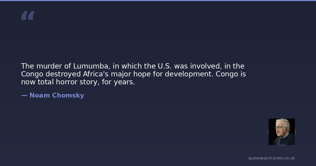 The murder of Lumumba, in which the U.S. was involved, in the Congo destroyed Africa's major hope for development. Congo is now total horror story, for years.